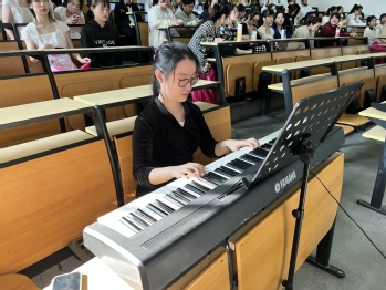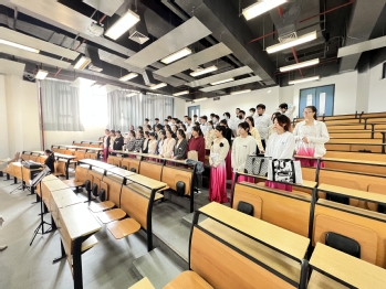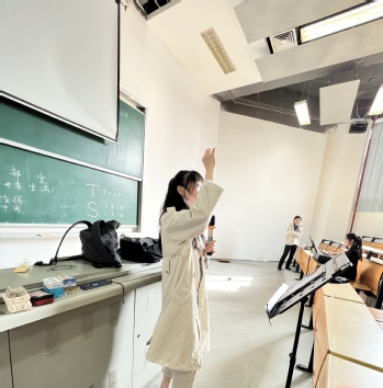 从10月11日接到上级有关通知开始,教育学院副院长文曙光立即召开合唱节筹备协调会,经过与声乐教研室组长沈光耀、教师陆韵琇商议后定曲《十送红军》,辅导员葛玉华负责组织学生参加和督促日常练习进度。由于受疫情封控的影响,文院长带领团队协调、解决各种困难,如前期学生居家上网课,无法集中排练,及后期近半数原定参加学生封控在家不能完成到校排练,则尽快调换参加学生;再如录制参赛视频的阶梯教室没有钢琴,则由葛老师带领学生从9楼搬到录制场地等。沈老师、陆老师利用课余时间承担学生排练、指挥任务。同时,信息技术部门吕郁俊老师也积极帮助我系完成视频录制与剪辑工作。