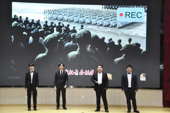 音乐学专业学生在此次活动中带来两首合唱作品《绒花》、《祖国不会忘记》。《绒花》带有浓郁淮河流域山歌的音调和民间音乐风格;《祖国不会忘记》歌颂在大山深处为我国航空航天事业默默贡献的工程师们,歌曲唱出所有为共和国建设与发展默默奉献的人的心声。学生们用真挚歌声唱响对祖国的热爱,致敬为祖国无私奉献的英雄们。