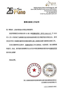 4月8日,第25届桑塔·塞西利亚国际钢琴比赛上海赛区在松江赫贤学校顺利进行。此次上海赛区比赛评委阵容强大,由来自上海各大专业音乐院校的专家教授组成。选手们琴技高超,各奖项竞争异常激励。我校教育学院音乐学专业多名学生参加本次比赛,3名学生积极担任赛事志愿者,共8名参赛选手分别在青年组、高校组等组别中取得佳绩。