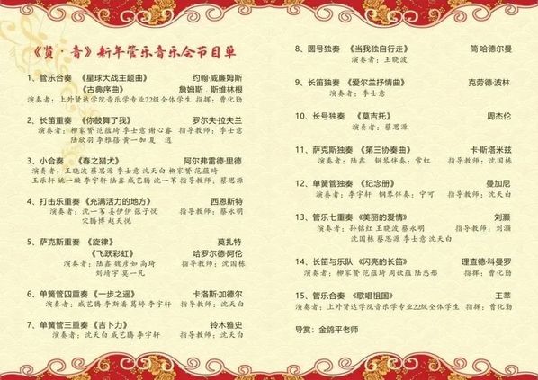 音乐会共上演15个精彩节目,曲目风格灵活多样,参演者中有相当一部分数量的学生管乐学习时间还不足一年,他们在全体管乐教研组指导教师的带领下,不断打磨、精进自己的专业技能,全面提升综合素养,风雨无阻坚持参加每周乐队排练,用持之以恒的努力和付出换来精彩的演出成果。