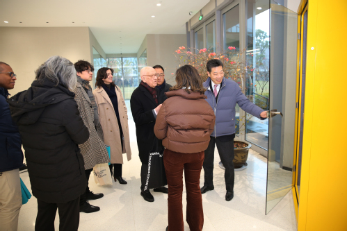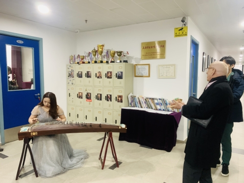 会谈开始前,教育学院赵炳辉院长、文曙光副院长等一行陪同法国巴黎高等师范音乐学院来访贵宾参观了我校崇明校区,包括行政楼、综合楼精英校友墙、智慧教学中心、图文信息中心等,来访贵宾们被我校优美的校园环境、智能化的硬件设施、高度的信息化水平、浓郁的国际化氛围深深吸引。