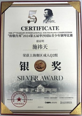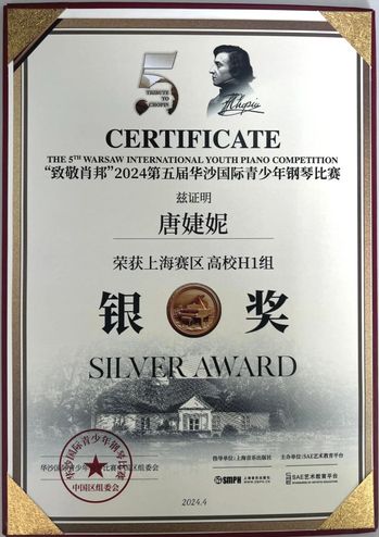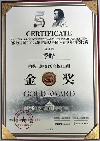 2024年4月27日,“致敬肖邦”2024第五届华沙国际青少年钢琴比赛(上海赛区)初赛在真实空间音乐厅隆重举行,教育学院音乐学专业8名学生参加本次比赛并取得佳绩。