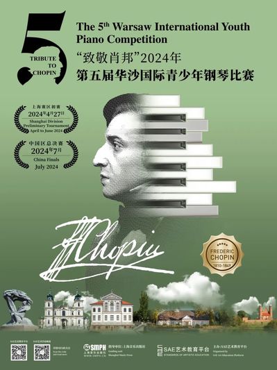 “致敬肖邦”华沙国际青少年钢琴比赛发起于2020年3月,由SAE艺术教育平台主办,上海音乐出版社协办。为纪念这位历史上具影响力和最受欢迎的钢琴作曲家—肖邦诞生210周年,通过举办全国性钢琴赛事活动,发现、培养、推选出一批优秀的琴童。