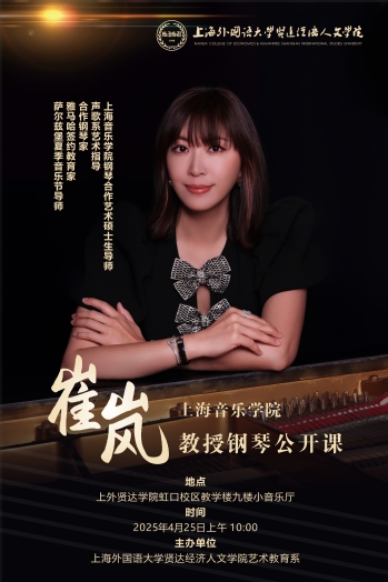 2025年4月25日上午十点,音乐学专业邀请上海音乐学院崔岚教授,在教学楼9楼小音乐厅举办钢琴公开课。对于崔岚教师的到来,音乐学专业表示热烈欢迎。