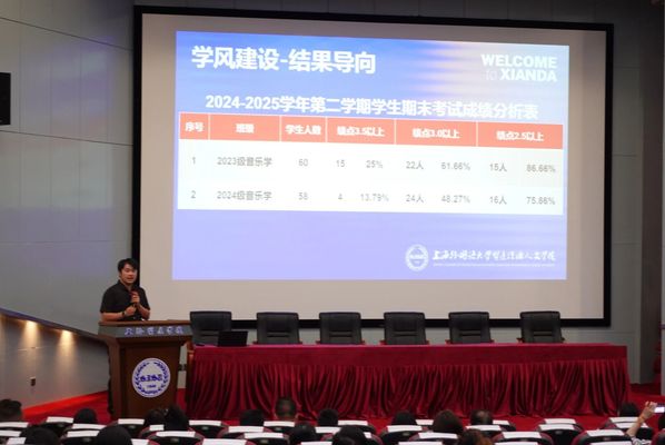 为进一步加强家校联动,助力新生更快适应大学生活,学院领导同时在行政楼报告厅同步召开新生家长交流会。音乐学院副院长文曙光围绕音乐学专业的办学特色、教学成果、师资力量展开介绍,重点讲解了实习见习、艺术实践、学科竞赛等实践教学环节的安排,让家长清晰了解孩子未来四年的专业学习路径;党总支书记钱正阳则从学生服务管理、学风建设、校园文化活动等方面入手,详细介绍学院在学生日常管理、心理健康辅导、综合素质培养等方面的举措。