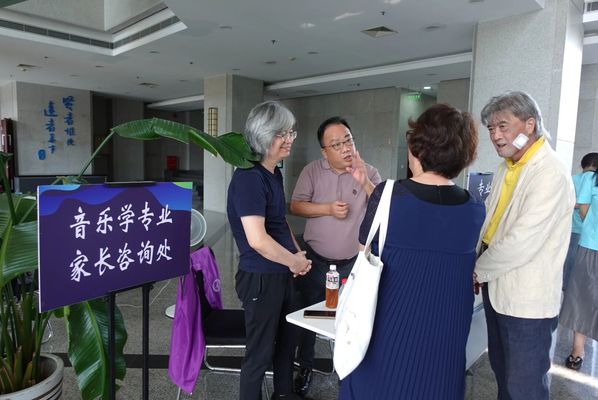 报到当天,校园内的迎新站点热闹而有序。身着统一志愿服装的工作人员热情上前,接过新生手中的行李,耐心引导他们完成身份核验、材料提交、校园卡办理等报到手续;辅导员老师则围绕课程安排、宿舍生活、专业学习规划等新生关心的问题,逐一进行细致解答。音乐学专业的教师们向新生家长介绍专业学习特点与未来发展方向,更传递着对新生成长的期待与嘱托,让初入校园的新生及家长深切感受到学院的温暖与关怀。