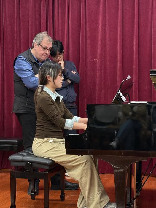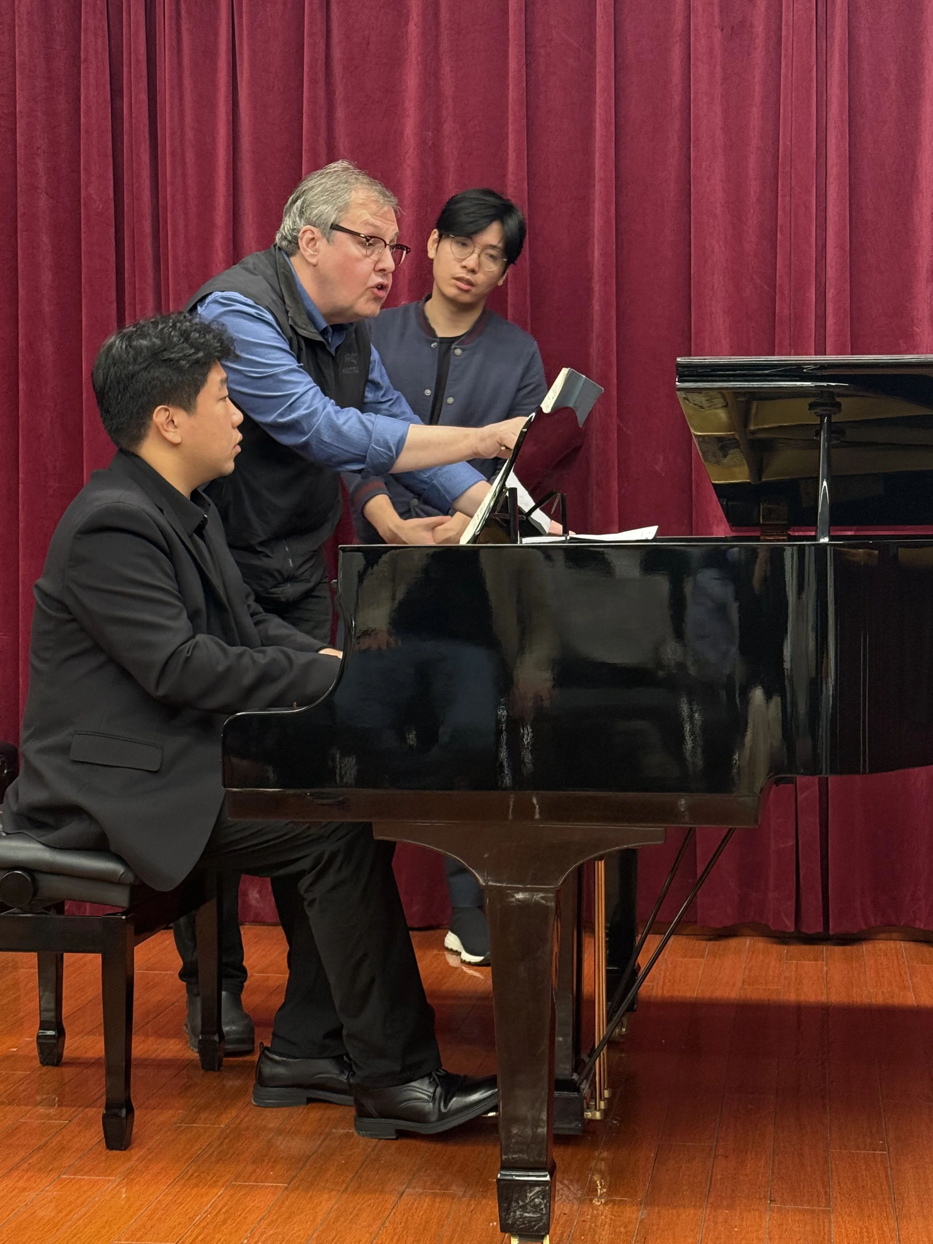 音乐学院两名大二“精英计划”的学生黄诗媛、张郅睿先后登台,分别演奏李斯特《爱之梦》第三首、肖邦《第三叙事曲》。两位同学在展现演奏技能的同时,分别融入自己对作品的理解与情感表达,呈现出别具风格的浪漫派作品。布鲁贝克教授在细致聆听后,从作品的整体意境出发,重点解析了如何通过触键力度与踏板控制的微妙配合来营造作品的演奏氛围。并且教授通过讲解加示范的方式,更生动、细腻的讲解作品的创作背景、演奏特色、演奏技巧等,使学生们对这首经典作品的演绎有了更深层次的理解。