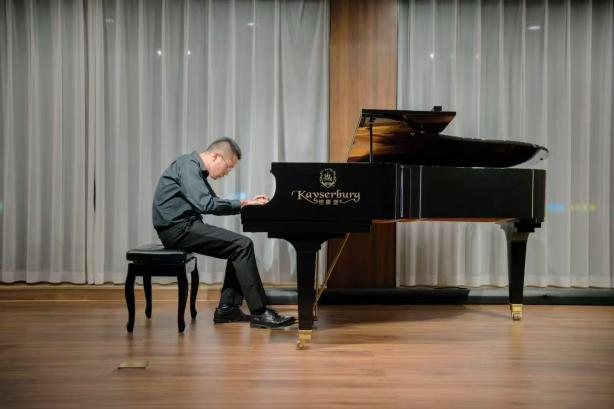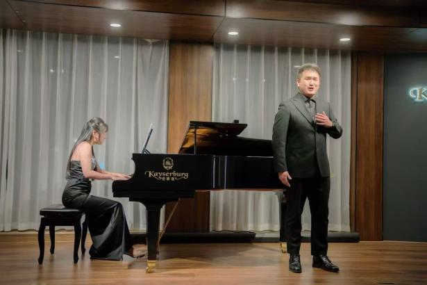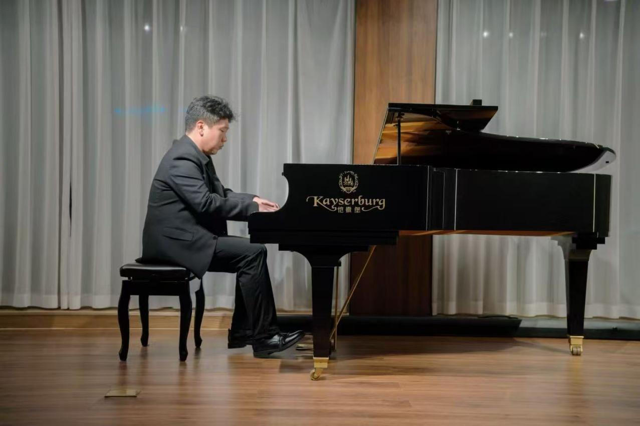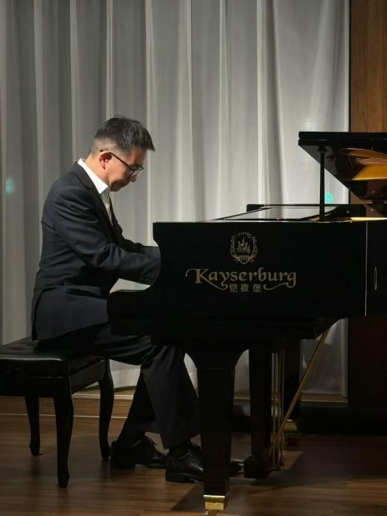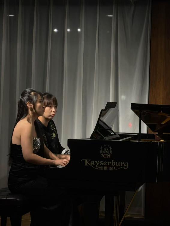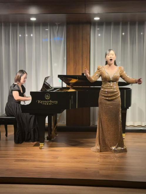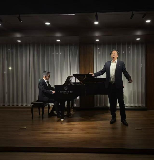 演出当晚,现场座无虚席,青年教师们轮番登场,用专业实力点燃现场。张茜老师率先亮相,一曲《图兰朵》选段嗓音清亮婉转,《青春舞曲》的明快节奏搭配灵动唱腔,瞬间让台下观众跟着轻轻打节拍;何大伟老师端坐钢琴前,指尖在琴键上灵动跳跃,《镜子组曲-小丑的晨歌》中诙谐的旋律与细腻的强弱变化,仿佛将“小丑晨起”的画面呈现在观众眼前,演奏结束时台下掌声如潮;龚泰宇老师以浑厚磁性的嗓音演绎《我的爱人你可听》,深情唱腔打动人心,随后《唐・卡洛》选段的高亢爆发力,更展现出扎实的声乐功底;吴兴业老师的《降A大调英雄波兰舞曲》奏响时,钢琴的磅礴气势扑面而来,每一个重音都敲击在观众心上;沈光耀老师带来《春花秋月何时了》,婉转曲调中满是离愁别绪,紧接着《梦游女》选段的空灵唱腔,又将现场带入浪漫的歌剧世界;刘屹昕老师的《钢琴奏鸣曲“悲怆”第二乐章》,舒缓而富有张力的演奏,带领观众领略钢琴优美的旋律;冯文星老师的《江城子·乙卯正月二十日夜记梦》又让观众沉浸在美妙的歌声之中;常虹老师与杨孜奕老师的四手联弹《匈牙利舞曲第四首》默契十足,双手交错间,欢快激昂的旋律将演出推向高潮。当《我和我的祖国》的音乐响起,全场观众与台上演员们共同唱响熟悉的旋律,歌声回荡,不少观众拿出手机记录这一温暖时刻,掌声与歌声交织,久久未歇。