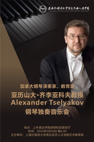 2025年5月26日晚6时,音乐学专业特邀加拿大顶尖钢琴家、教育家亚历山大·齐李亚科夫(Alexander Tselyakov)教授,于崇明校区语信楼举办钢琴独奏音乐会。这位被誉为“俄罗斯学派钢琴艺术最佳传承者”的音乐家,将以精湛技艺与深刻音乐性,为观众呈现一场跨越时空的古典音乐盛宴。