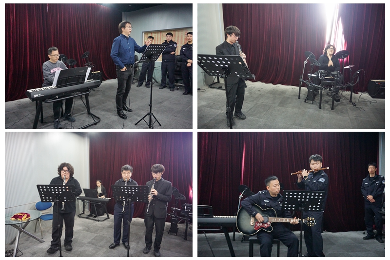令人动容的是,五角场监狱的民警代表们也登台展示了他们的艺术风采。竹笛与吉他合奏的《大鱼》意境悠远,旋律中饱含着对生活的热爱与对美好的追求。据了解,这些民警们在高压繁忙的工作之余,利用休息时间自学乐器,在艺术中寻找心灵的慰藉与成长。他们的表演虽没有专业的舞台包装,却有着最真挚的情感表达,让学院师生深受触动。大家纷纷表示,民警们在坚守岗位、履行职责的同时,仍能坚持艺术追求、提升自身修养,这种精神值得每一个人学习。