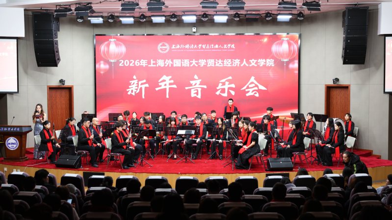 岁末迎新,乐韵飞扬。2025年12月22日晚6:00,上海外国语大学贤达经济人文学院2026新年音乐会在崇明校区语信楼报告厅隆重启幕。本次音乐会由学校主办,党委学生工作部与音乐学院联合承办,以悠扬旋律凝聚奋进力量,用艺术盛宴喜迎新年曙光,为全校师生带来了一场浸润心灵的文化体验。校党委书记赵荣善、副校长马艳红以及学校相关部门、学院领导出席此次音乐会。