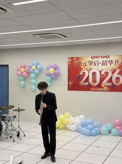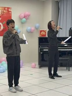 晚会开场前,击鼓传花小游戏率先热场,祝福与笑声在教室中交织;主持同学的幽默表现,更是让现场氛围提前升温。正式演出环节,童麟的古筝《丰收锣鼓》奏响序曲,欢快的弦音敲开“迎新·欢聚”篇章的序幕。随后,李泰格演唱《Hero》尽显青春热血,秦煜普的《我们的歌》勾起同窗温情;任鸿赞的单簧管演奏《City Of Stars》与《Another Day Of Sun》,则以中西器乐之美,让爱乐之城的浪漫在现场流淌。